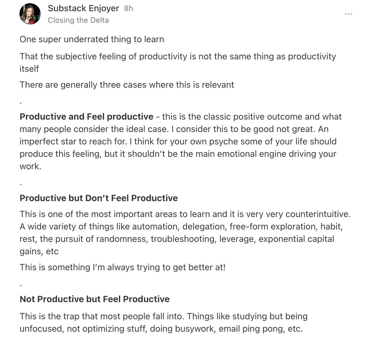 Because most of the kinds of productivity which are high leverage and compounding oftentimes don’t feel productive.